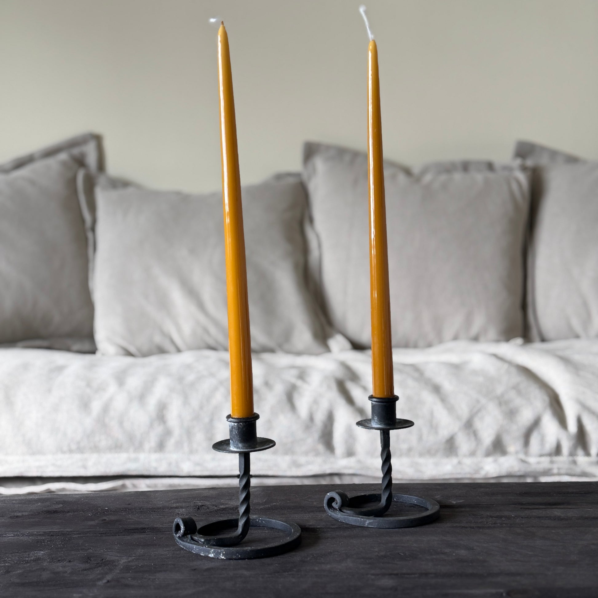 Paret ljusstakar i smide från tidigt 1900-tal.