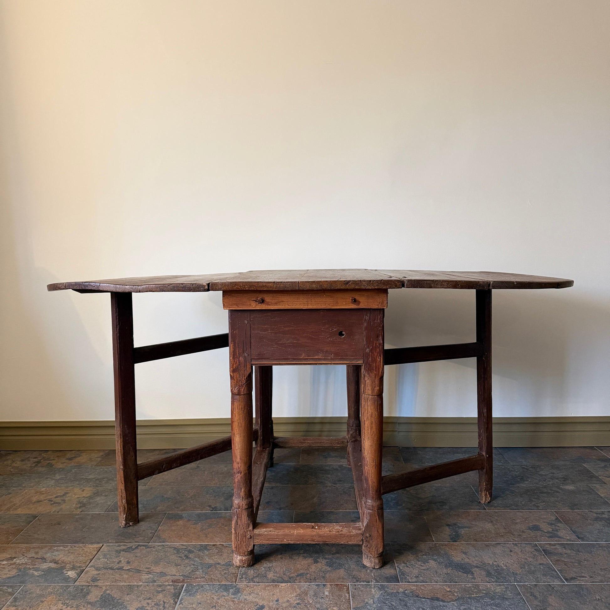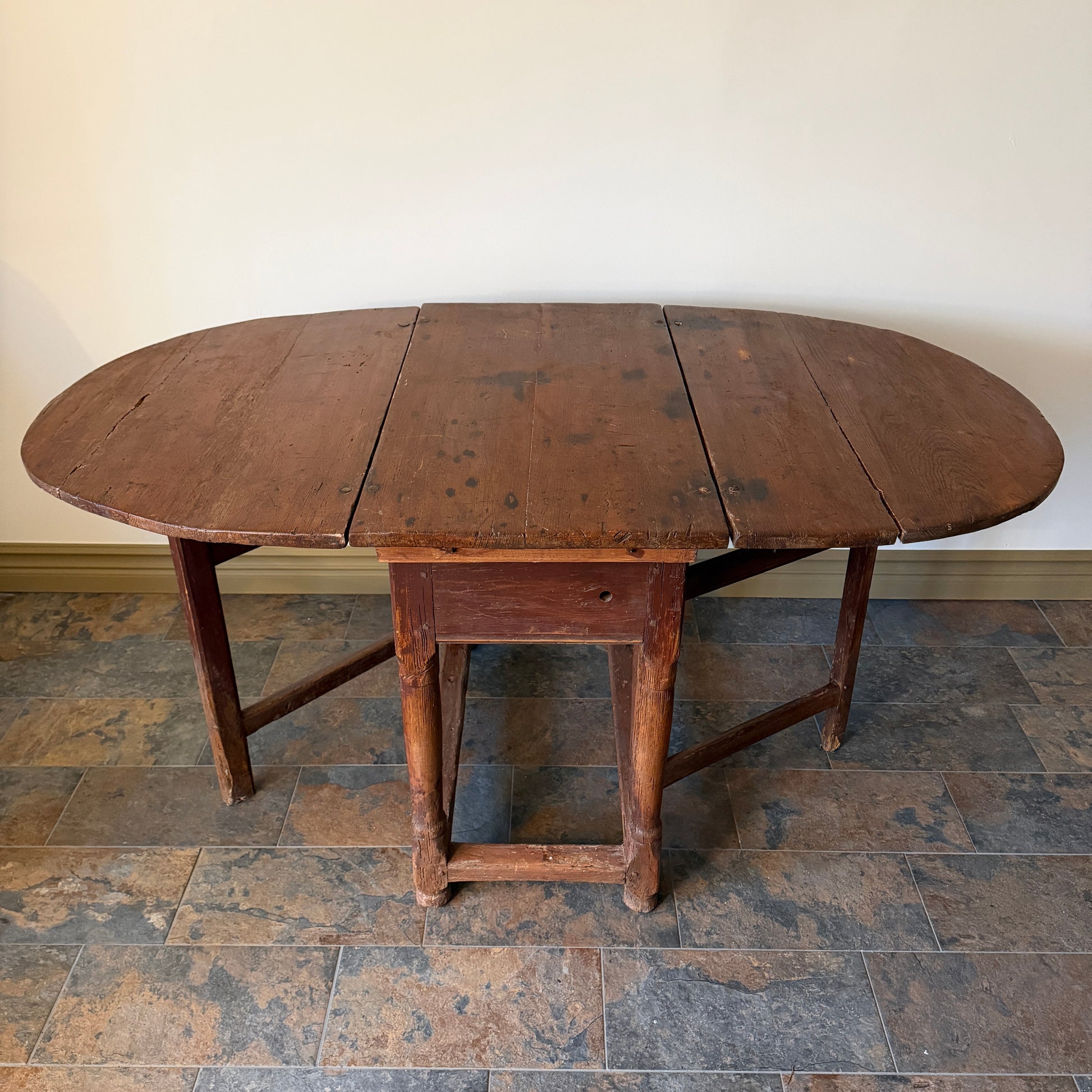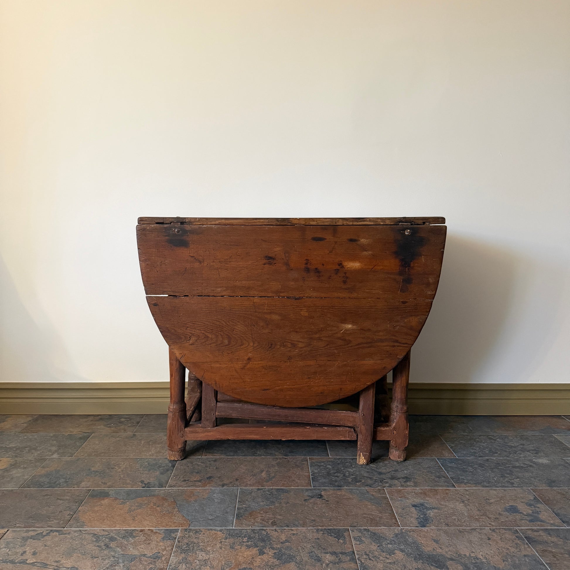 Ge ditt hem en sällsynt bit historia med detta genuina slagbord. Ett fantastiskt exempel på tidens hantverkstradition med sin kraftiga konstruktion, handtäljda detaljer och levande patina som endast tre århundraden kan skapa.