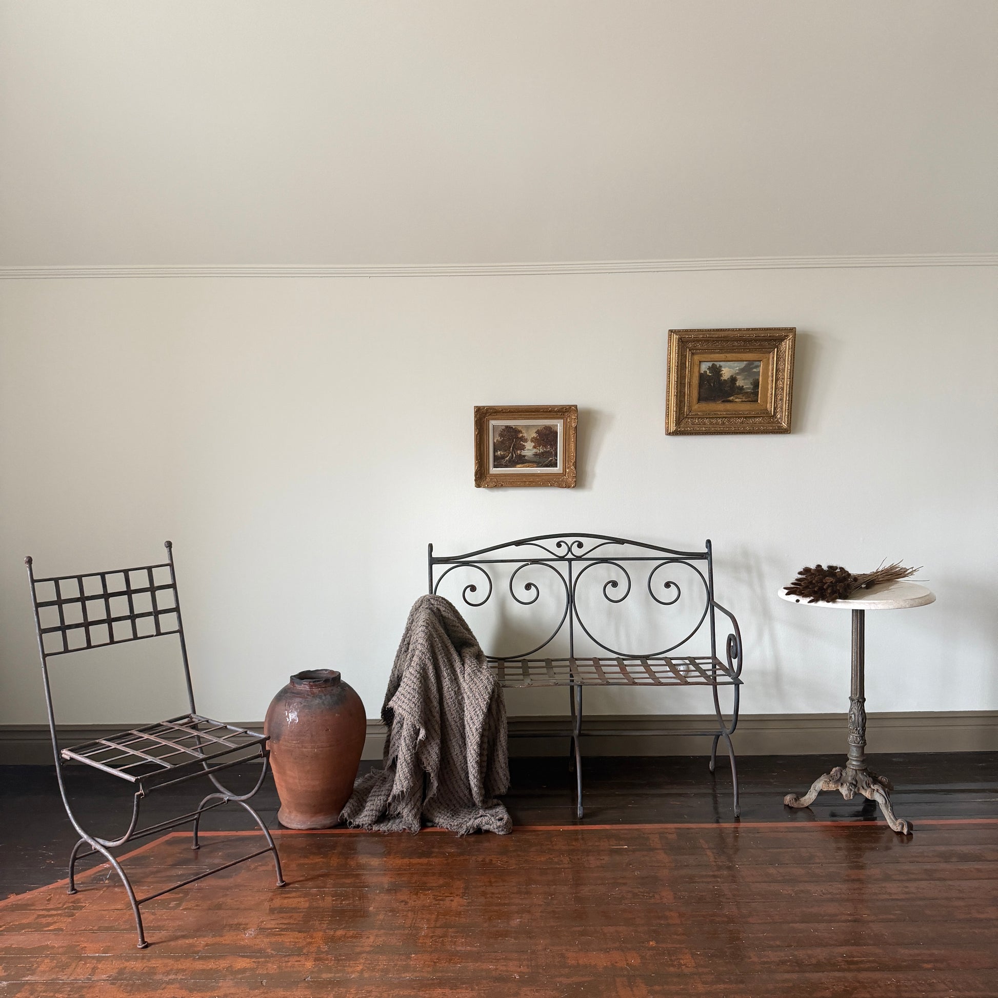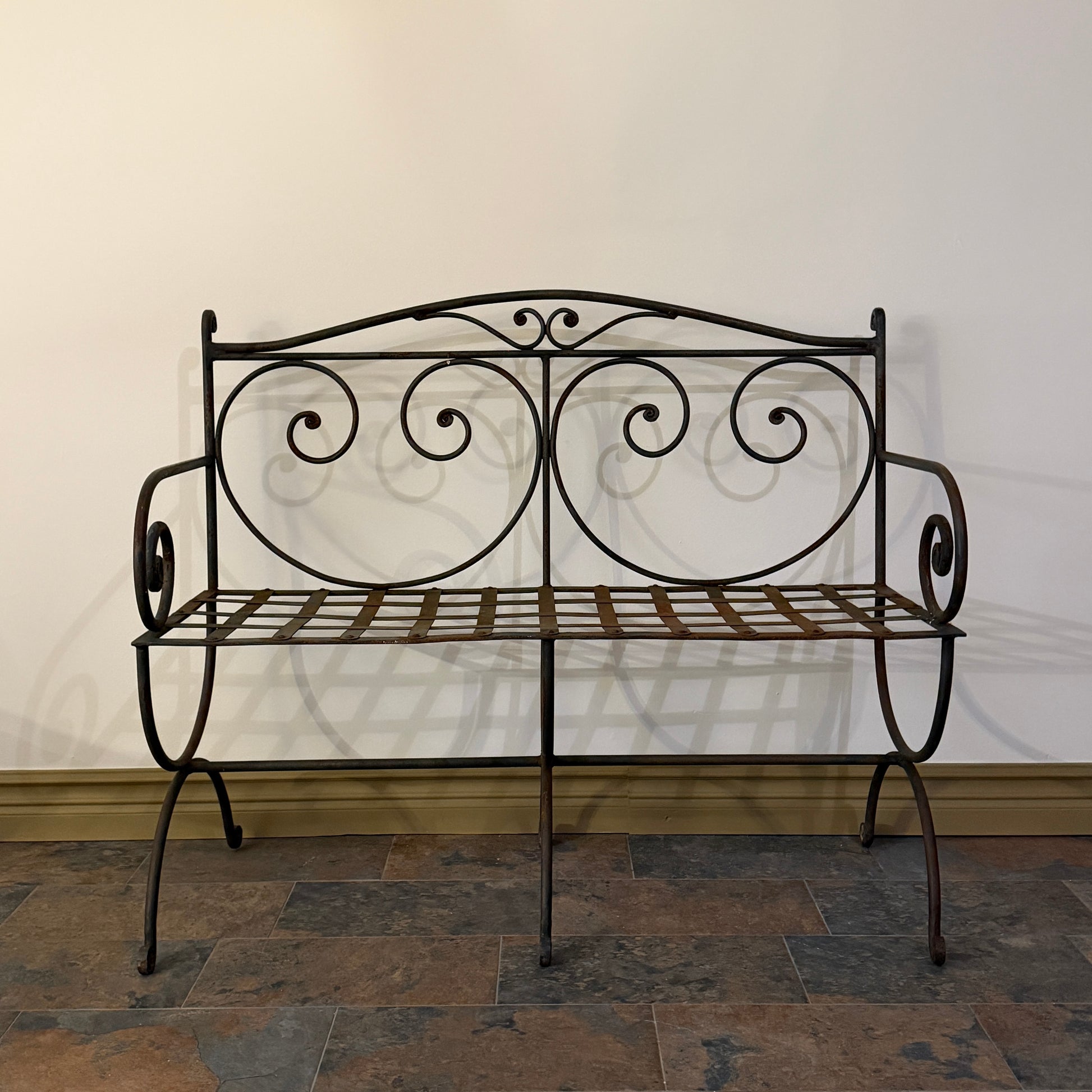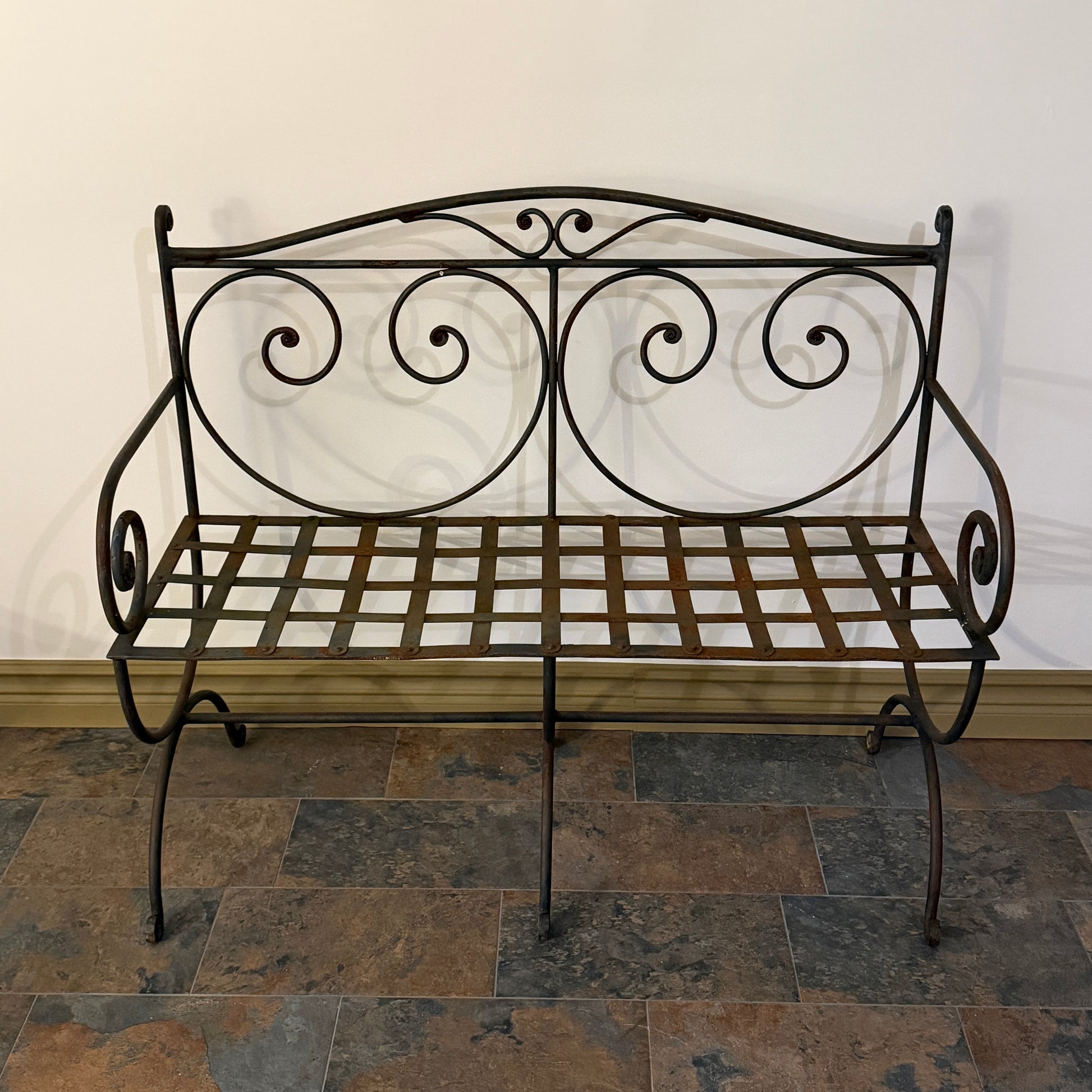En nätt soffa i vackert smidd smide.